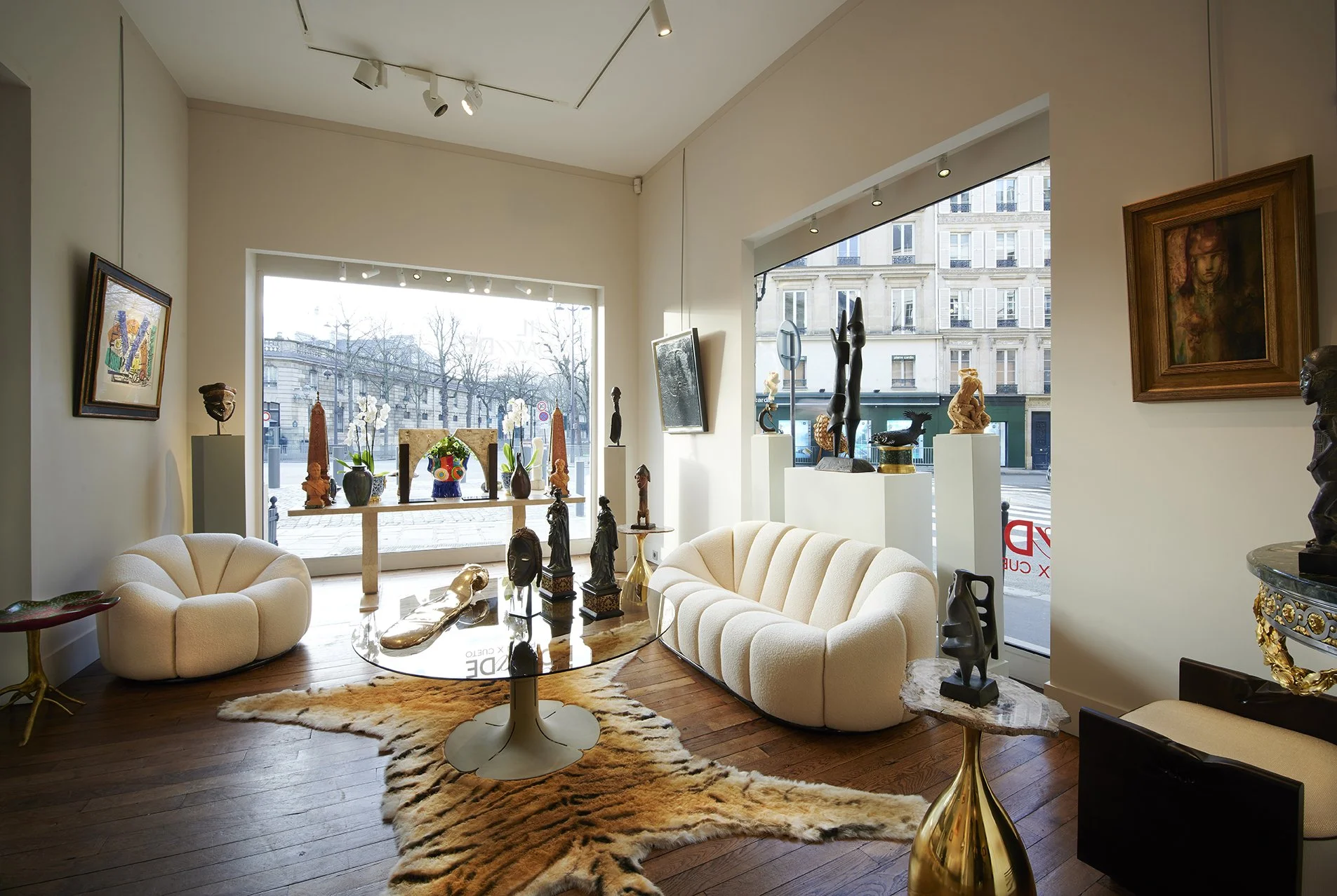 Extraordinary booth in collaboration with Gabriel & Guillaume for The Salon @Park Armory November 2021 featuring Jean-Michel Basquiat, Exceptional Armchairs by Jean Royere, table by Acacio Gil Borsoi, sculptures by Eve Laroche Joubert .